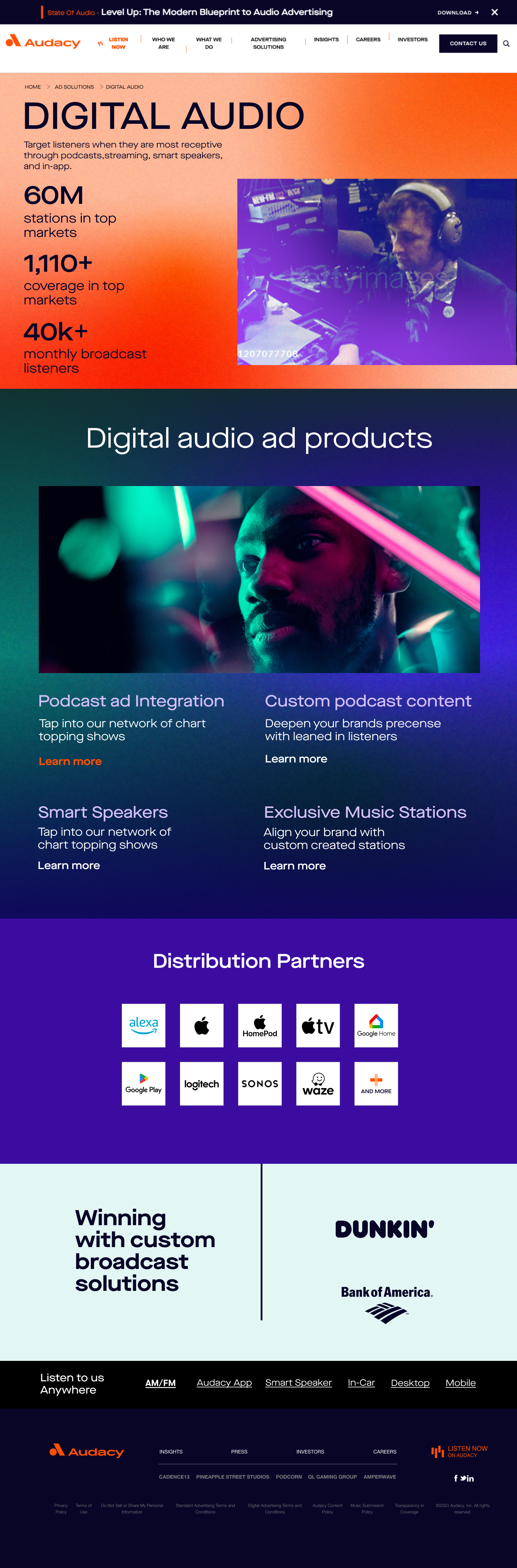Audacy ad solutions provide a comprehensive suite of tools designed to connect brands with listeners across various audio platforms. With a strong emphasis on data-driven strategies, Audacy enables advertisers to reach their target audiences effectively through innovative audio advertising formats.